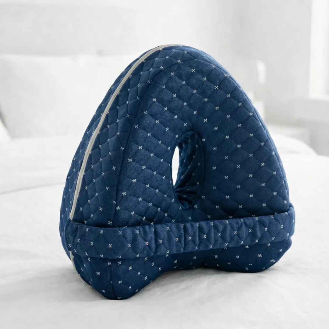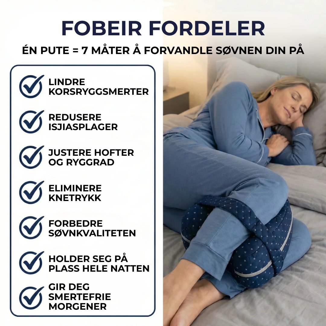 Når du sover på siden uten støtte mellom bena, roterer hoften og kroppen kompenserer. Dette legger belastning på rygg, hofter og knær, som kan føre til stivhet og ubehag om morgenen.
