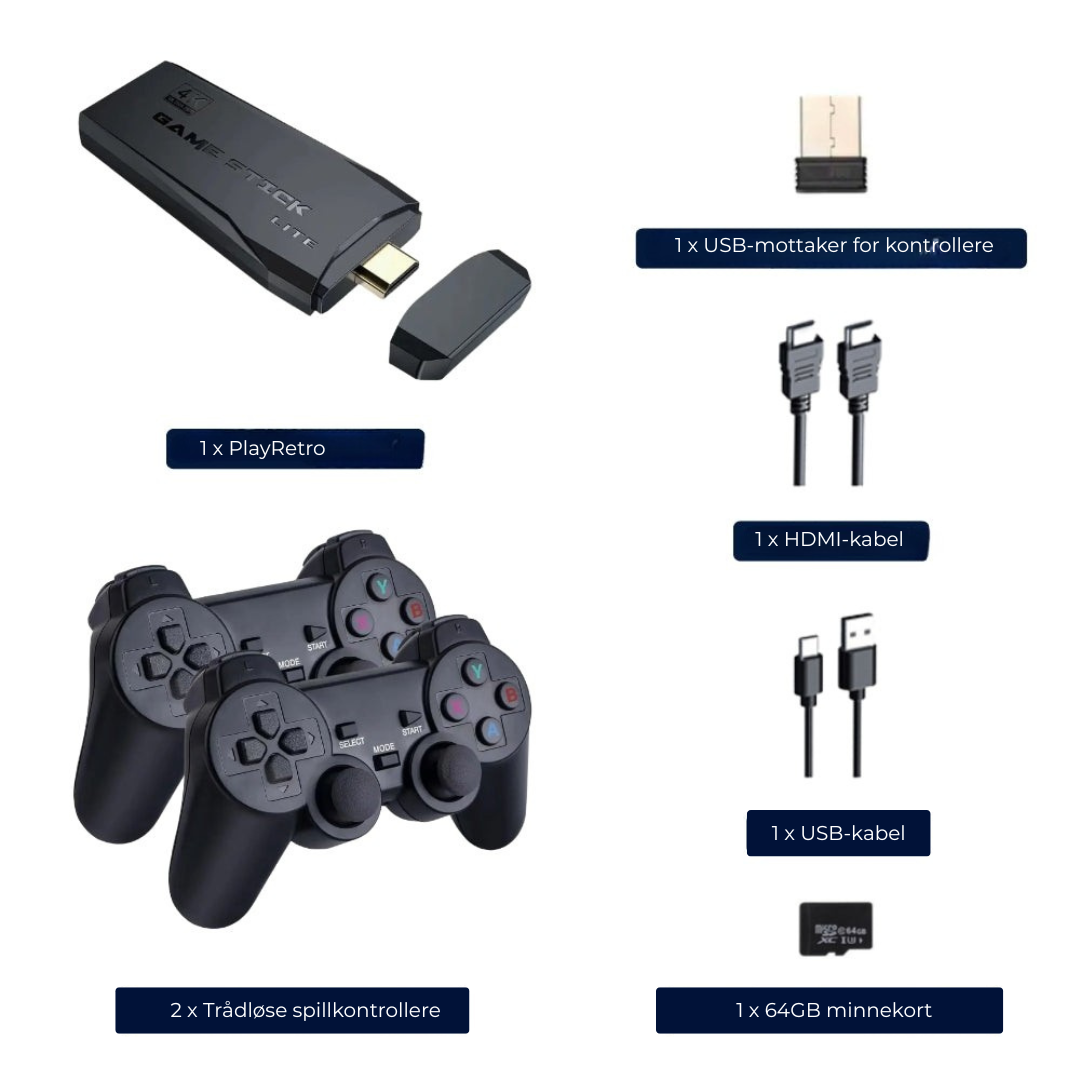 PlayRetro™ er en kompakt retro-konsoll som kobles direkte til TV-en via HDMI.